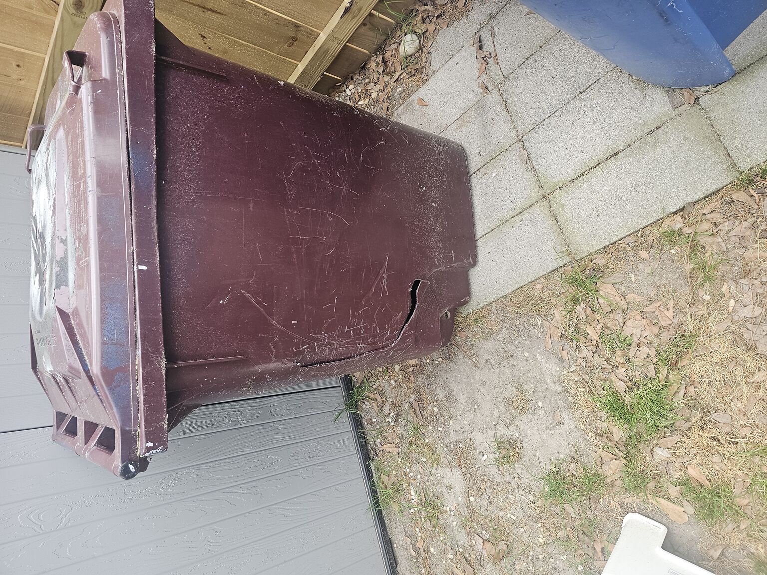 Looking to get trash can replaced, wheels broken off and can is cracked